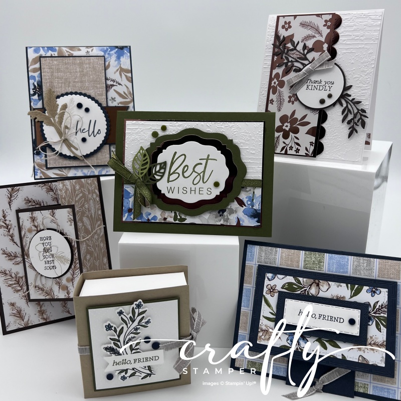 Create six stunning projects using Stampin’ Up’s Delicate Dreams Collection. Included in the step-by-step, full-color pdf are directions for five greeting cards and one 3D item.